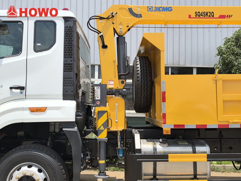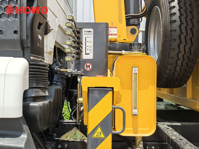 Der Howo-LKW mit 4-Tonnen-Kran zeichnet sich durch außergewöhnliche Tragfähigkeit und Stabilität aus. Er bietet eine maximale Hubkraft von 4 Tonnen und ein Hubdrehmoment von 10 Tonnen. Sein Hydrauliksystem liefert eine Fördermenge von 25 l/min, hat ein Eigengewicht von 1.271 kg und ist um 360° drehbar. Dadurch ist ein flexibler Einsatz in unterschiedlichsten Umgebungen möglich, beispielsweise auf Baustellen und in Docks.