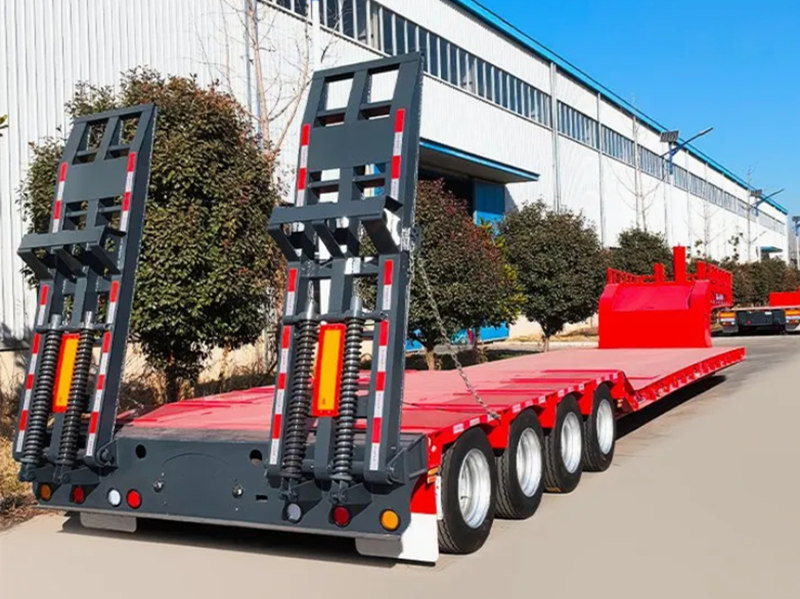 Unser 4-achsiger 80-Tonnen-Tieflader Das Fahrzeug verfügt über einen abnehmbaren Schwanenhals und eine abgesenkte Mittelkonsole, vier 13-Tonnen-Fuwa-Achsen und ein verstärktes Blattfederungssystem mit zehn Blattfedern. Diese Kombination sorgt für eine erhöhte Tragfähigkeit und einen niedrigeren Schwerpunkt. Die optimierte Federung verbessert die Fahrstabilität deutlich, während die modulare Bauweise schnelles Be- und Entladen ermöglicht. Es eignet sich für verschiedene Ladungsarten und steigert so die Transporteffizienz. Standardisierte Komponenten gewährleisten Kompatibilität und einfache Wartung, und hochgradig kundenspezifische Lösungen sind verfügbar.