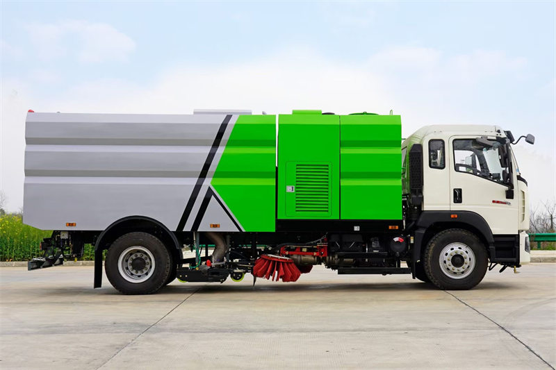 ♦ Die Howo-Kehrmaschine ist mit einem geräumigen 4-Kubikmeter-Wassertank ausgestattet, um eine kontinuierliche Wasserzufuhr zur Staubbindung während des Kehrvorgangs zu gewährleisten.