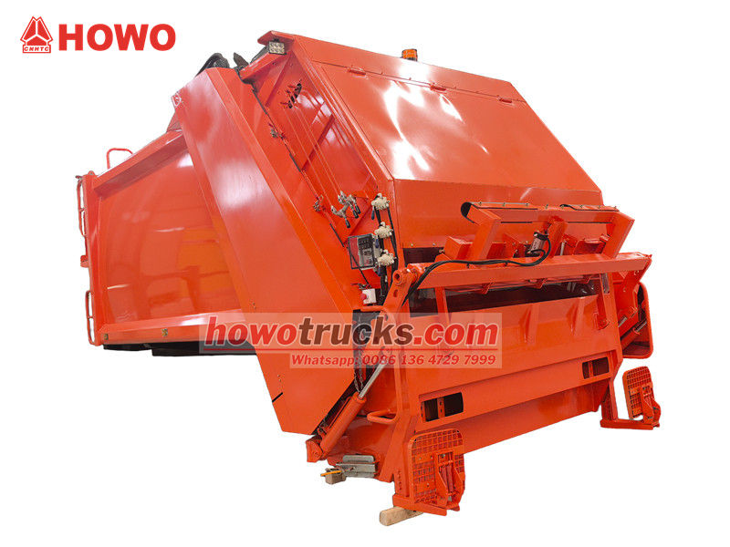 PLC control systemDer maßgefertigte Howo 10 CBM Hecklader-Aufbau besteht aus verschweißten, hochfesten Stahlplatten. Die Seitenwände sind einteilig geformt, was für eine robuste Außenkonstruktion und außergewöhnliche Langlebigkeit sorgt. Der Innenraum des Aufbaus ist mit einer speziellen Rostschutzbehandlung versehen und eignet sich daher für anspruchsvolle Einsatzumgebungen.