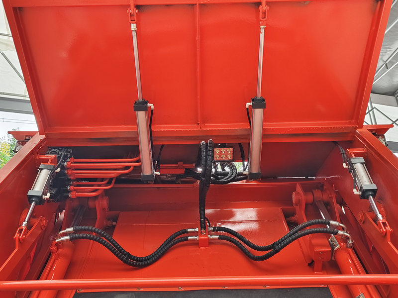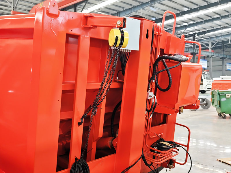 ●Druckplatten-Hydraulikzylinder: Die Druckplatte im Inneren der Kammer bewegen, um den Abfall zu verdichten und nach vorne zu befördern.