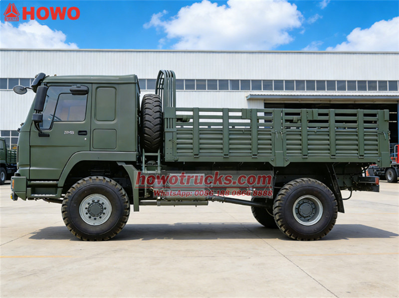 ♦Howo 4x4 fEin LKW mit Lattenrost kann bis zu 10Tonnenweise Fracht.