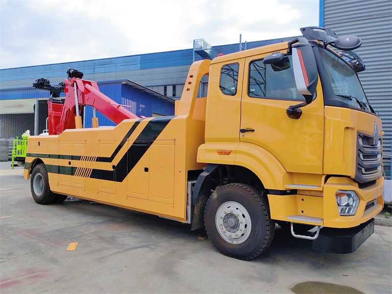 Dieser von der Chusheng Trucks Group gebaute Schwerlast-Abschleppwagen nutzt den Howo-Motor. NX-Kabine 4x2Antriebschassis und ist mit einem leistungsstarken HowoMC07.34-40 Dieselmotor (340 PS/1250 N.m Drehmoment) und ein HW13709XSTCL 10Das Getriebe verfügt über zwei Gänge. In Kombination mit einer HF9-Tonnen-Vorderachse und einer HC16-Tonnen-Hinterachse gewährleistet es außergewöhnliche Leistung, Tragfähigkeit und Zuverlässigkeit.2 Tonneshydraulische Winden, was zu einer beeindruckenden Nennzugkraft von 30 Tonnen, wodurch es sich ideal für die Bewältigung von Unfällen mit großen Lastwagen, Bussen und Baumaschinen eignet.