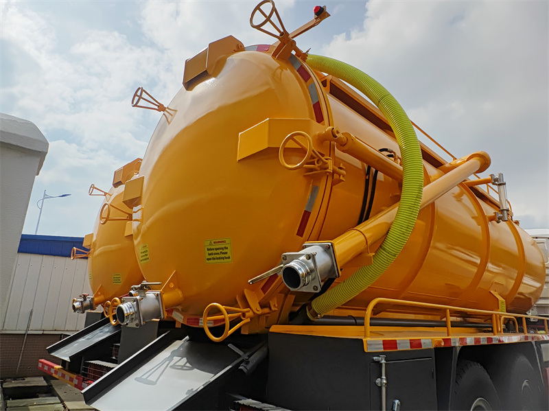 Der HOWO 6x4 20 m³ Abwassersaugwagen basiert auf dem HOWO TX430-Fahrgestell mit einem Radstand von 4600 + 1350 mm und ist mit einem Weichai WP12S430E201-Motor und einem Sinotruk HW19710-Getriebe ausgestattet. Der Aufbau besteht aus einem 20 m³ fassenden Abwassertank aus 5 mm dickem Kohlenstoffstahl. Das Fahrzeug verfügt über eine Wasserzirkulations-Vakuumpumpe 2BEA-204 mit einer Förderleistung von 20 m³/h.³/min, ein Schauglas, ein Sekundärfilter, ein Auslassventil, ein Abwasserrohr, eine Leiter, ein Werkzeugkasten, ein Vakuumdruckmessgerät, ein Steuerventil auf der linken Seite, ein Steuerventil zum Öffnen und Schließen der Heckklappe und ein Tanklift.