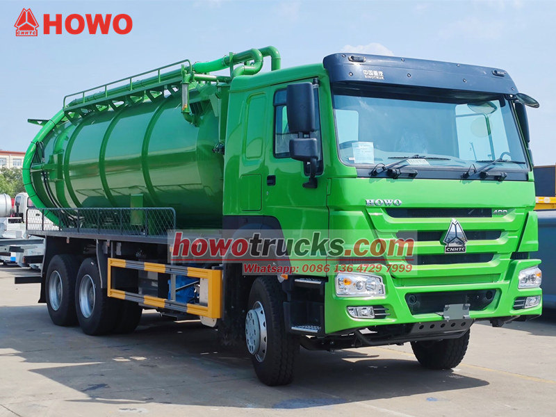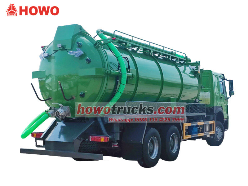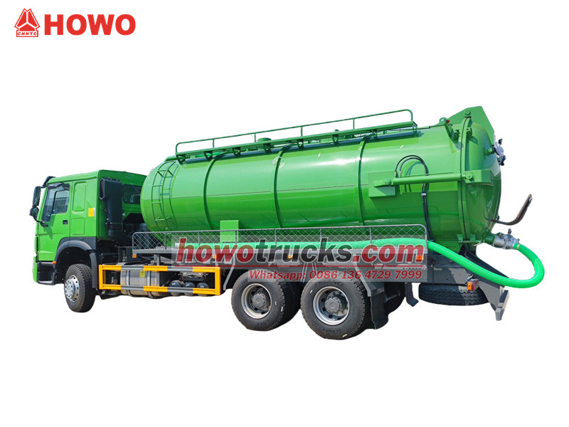 Jurop pump, 4×4, 6×6, RHD drive is optionalDer SINOTRUK HOWO Saugwagen ist ein professionelles Entsorgungsfahrzeug auf Basis des robusten HOWO 6x4-Fahrgestells, das nach dem Prinzip des Unterdrucks arbeitet. Er dient primär dem Absaugen und Transportieren von flüssigen Abfällen wie Schlamm und Fäkalien aus Abwasserkanälen, Klärgruben und Regenwasserkanälen und bewältigt so effektiv die Herausforderungen der Verschmutzung und Reinigung städtischer unterirdischer Rohrleitungen und verschiedener Grabenarten. Zu seinen Kernkomponenten gehören eine leistungsstarke italienische MORO-Vakuumpumpe und ein großvolumiger Abwassertank, der eine hohe Saugleistung über große Entfernungen und eine beachtliche Saugtiefe ermöglicht.