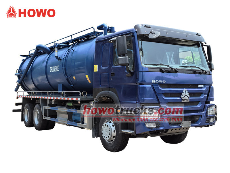16000+16000Der von CS TRUCKS hergestellte HOWO 20000L Vakuumtankwagen ist ein Entsorgungsfahrzeug für die Reinigung und den Transport von Abwasser, Klärschlamm und anderen flüssigen Abfällen. Er basiert auf einem robusten HOWO 6×4 Schwerlastfahrgestell und ist mit einem Vakuumsaugsystem und einem Vorratstank für effiziente Abfallentsorgung ausgestattet. Angetrieben von einem 400 PS starken WP12.400E32 Dieselmotor, verfügt dieser HOWO Fäkalientankwagen über ein 10-Gang-Schaltgetriebe und ein Druckluftbremssystem. Zu seinen Kernkomponenten gehören eine Wasserring-Vakuumpumpe mit einer Saugleistung von 20,5 m³/min, ein 10 Meter langer Saugschlauch und ein 6 mm dicker Kohlenstoffstahltank. Mit einer Saughöhe von über 9 Metern bewältigt er auch anspruchsvolle Abwasserreinigungsaufgaben effizient.