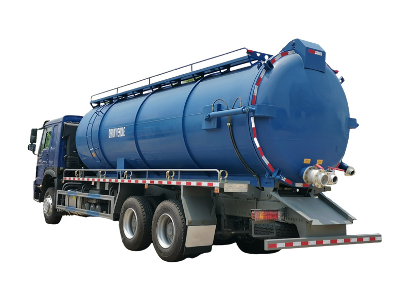 Der HOWO Vakuumpumpenwagen Das Fahrzeug verfügt über zahlreiche praktische Funktionen wie ein Flüssigkeitsstandalarmsystem, Front- und Rückspiegel sowie eine hydraulisch betätigte Heckklappe, die sowohl Bedienkomfort als auch Sicherheit gewährleisten. Die Vakuumpumpe Modell 2BE-204N bietet eine hohe Luftabsaugleistung mit einem Arbeitsdruck von 8000 Pa. Der Tank hat ein Nutzvolumen von 20.000 Litern, und sowohl Saug- als auch Förderzeiten sind für maximale Effizienz optimiert. Dank seiner robusten Bauweise und hohen Anpassungsfähigkeit findet dieses Fahrzeug breite Anwendung in der städtischen Abwasserbehandlung, der Reinigung von Klärgruben und dem Transport von industriellen Abfällen.