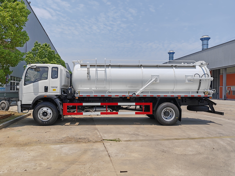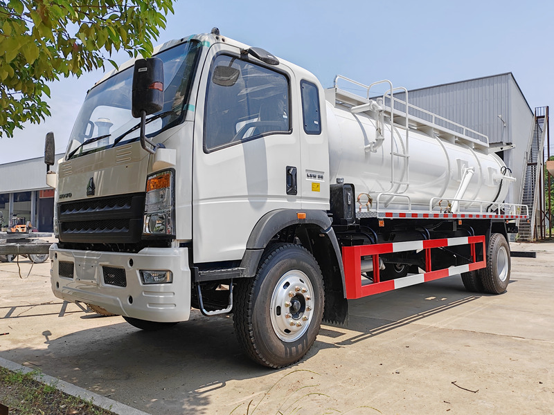 8000DerHOWO 5 m³ Abwasserpumpen-Tankwagen Dieses hocheffiziente Spezialfahrzeug wurde für die städtische Abfallentsorgung, den kommunalen Tiefbau und die industrielle Reinigung entwickelt. Angetrieben von einem 168 PS starken Cummins-Motor mit 6-Gang-Getriebe bietet es eine robuste Leistung. Der Aufbau verfügt über einen 5 m³ fassenden, korrosionsbeständigen Kohlenstoffstahltank mit einer italienischen Jurop-Hochvakuumpumpe (Saugleistung: 11.000 l/min), die das schnelle Absaugen von Abwasser, Schlamm und kleinen Feststoffpartikeln ermöglicht. Das Sichtinspektionsrohr und das hydraulische Steuerungssystem gewährleisten einen sicheren und komfortablen Betrieb. Dank Tankhebe- und Schnellöffnungsfunktion für die Heckklappe bietet das Fahrzeug geringe Wartungskosten und eine lange Lebensdauer. Es findet breite Anwendung in der kommunalen Abfallentsorgung (Klärgrubenreinigung, Rohrleitungsreinigung), der industriellen Abwasserbehandlung, bei Notfalleinsätzen und in verschiedenen anderen Bereichen.