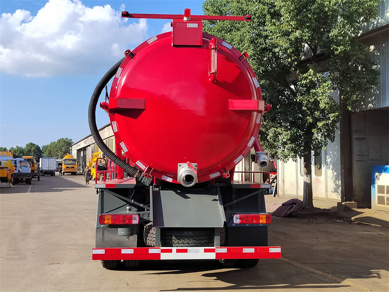 Standardkonfiguration | Ausgestattet mit Sichtfenster, Auslassventil, Reinigungsvorrichtung, 5 Meter langem Saugrohr, Öl-Wasser-Abscheidern, Überlaufventil usw. Der Zylinder-Vakuumtank kann hydraulisch um 40–45 Grad angehoben werden. Die hintere Tür kann hydraulisch geöffnet und geschlossen werden. | |