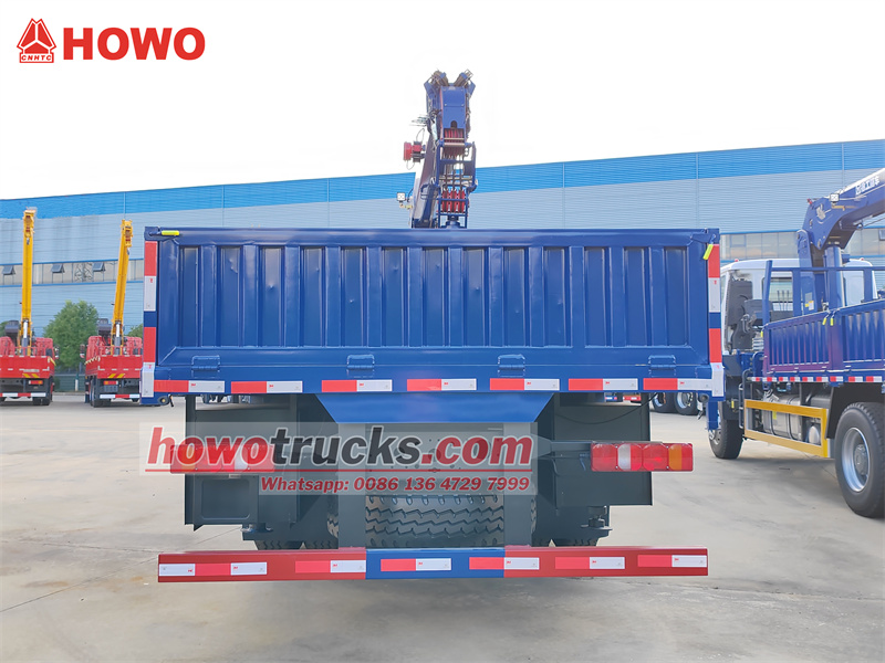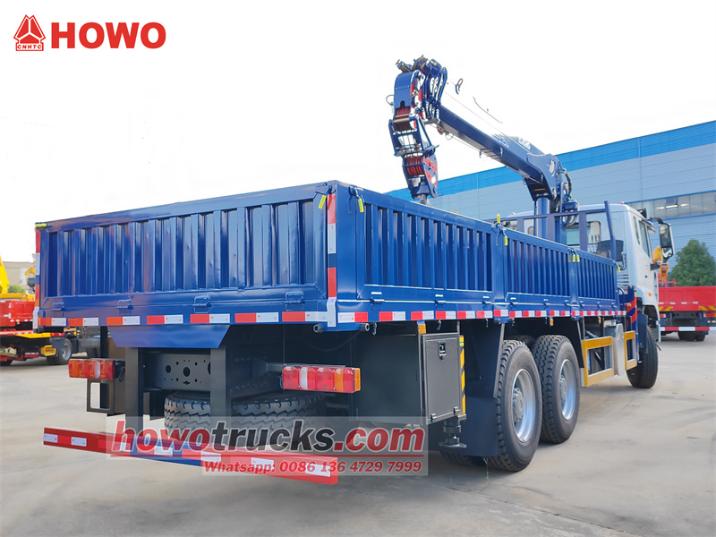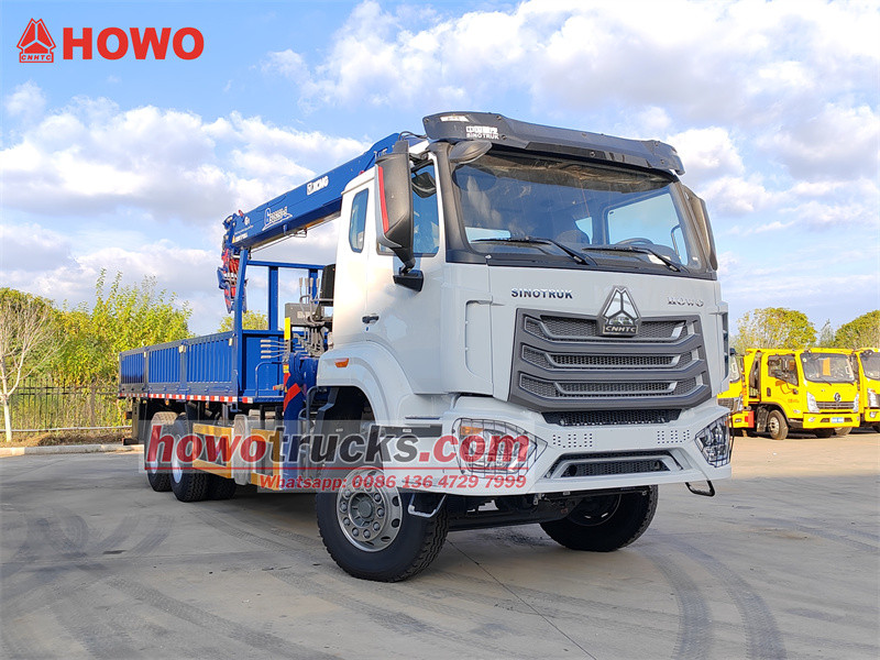 Der Sinotruk HOWO NX 6x4 10 TonnenKranDer Lkw hat einen Radstand von 4625 + 1350 mm und ist mit einem Sinotruk WD615.47-Motor mit 371 PS und einem HW19710-10-Gang-Getriebe ausgestattet. Der Aufbau misst 6200 x 2500 x 600 mm und besteht aus Kohlenstoffstahl mit einer Wandstärke von 6 mm und einer Bodenstärke von 8 mm.