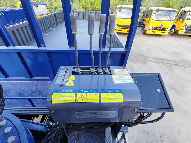 2. Bedienstand für die Hubarbeitsbühne: Der linksseitige Bedienstand für die Hubarbeitsbühne mit Sitz verfügt über integrierte manuelle Hydraulik-Joysticks, die eine gute Sicht auf die Arbeit aus großer Höhe und eine präzise Steuerung der Hubbewegungen ermöglichen.