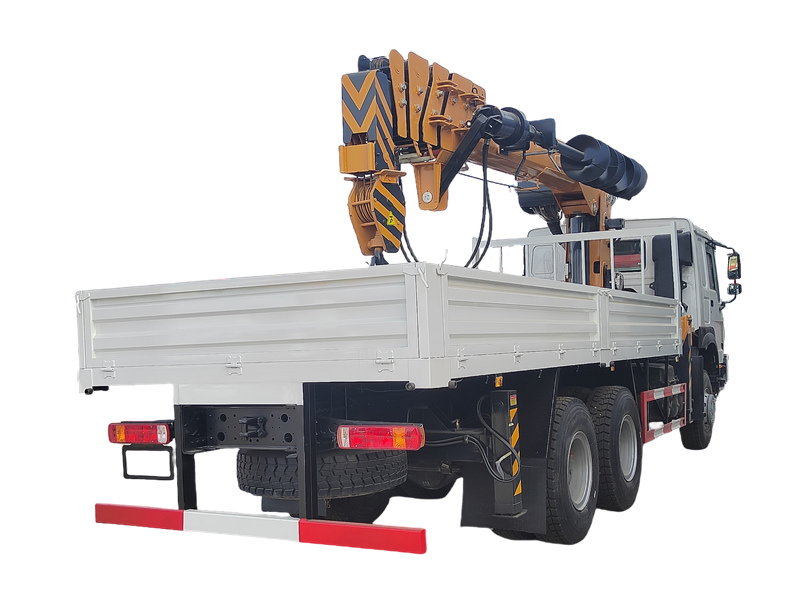 Der HOWO 6×6 LKW-Ladekran ist ein multifunktionales Baufahrzeug auf Basis des robusten HOWO Allrad-Fahrgestells. Er vereint Hebe-, Transport- und Bohrfunktionen und verfügt über einen hydraulischen Teleskopkran mit einer maximalen Tragfähigkeit von 12 Tonnen sowie ein 3 Meter tiefes Bohrsystem. Dank seiner hohen Leistungsfähigkeit und Geländegängigkeit ist er speziell für anspruchsvolle Bau- und Landschaftsbauprojekte im Freien konzipiert.