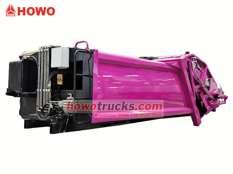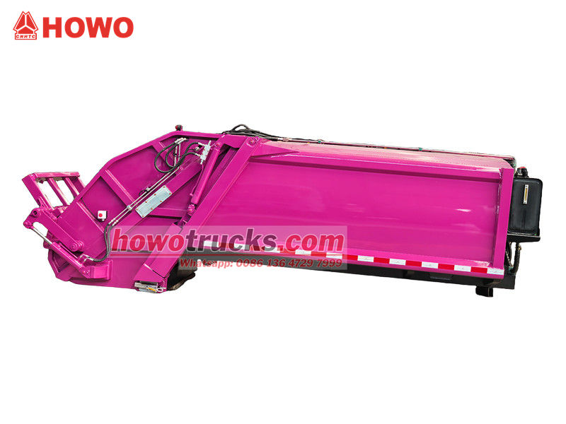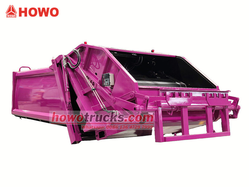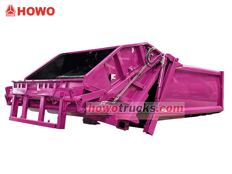 PLC control systemDer Aufbau des Howo 8 CBM Müllverdichtungsfahrzeugs besteht aus einem Müllbehälter, einem Lader, einem Schieberschild, einer Verdichtungsplatte und einem Hydrauliksystem. Der Behälter ist aus hochfesten, korrosionsbeständigen Stahlplatten verschweißt und bildet so eine hermetische Abdichtung, die das Austreten von Abwasser verhindert.