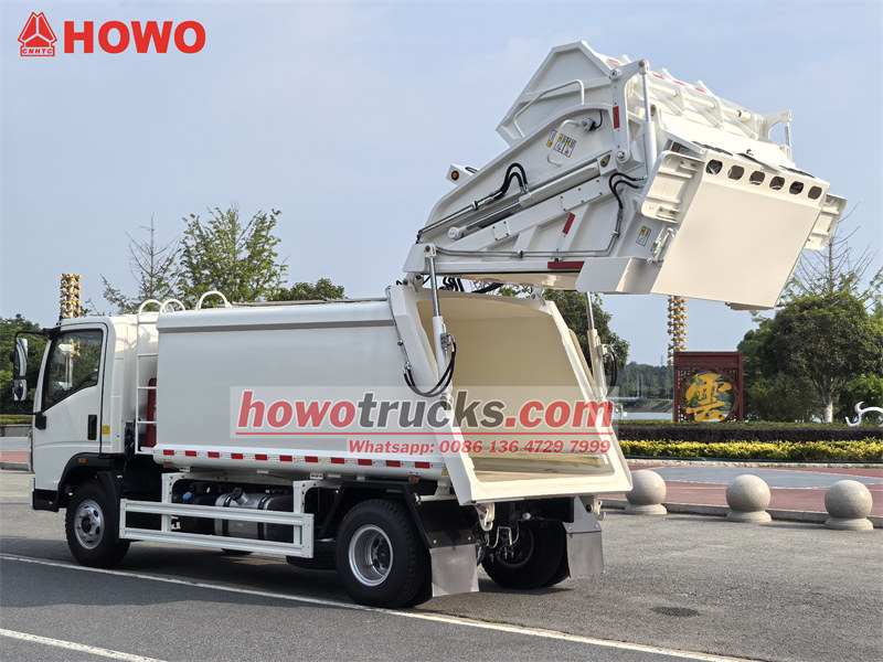 8000Sinotruk HOWO Müllwagen Der HOWO Dumpster Compactor Truck ist ein professionelles Müllsammelfahrzeug, das speziell für das Sammeln, Komprimieren, Lagern und Transportieren von Abfällen entwickelt und produziert wurde. Er wird auch als Hecklader-LKW, Müllverdichter oder Abfallverdichter bezeichnet. Der HOWO Dumpster Compactor Truck basiert auf dem HOWO 4x2-Leichtlast-Fahrgestell und ist mit einem 130 PS starken WEICHAI EURO 5-Dieselmotor ausgestattet, der speziell für den philippinischen Markt entwickelt wurde. Das Fahrzeug verfügt über eine CAN-BUS-Elektro- und eine Hydrauliksteuerung, die die Bedienung vereinfachen und den täglichen Einsatz erleichtern. Die Pulverbeschichtung schützt das Fahrzeug effektiv vor Rost und verlängert seine Lebensdauer.