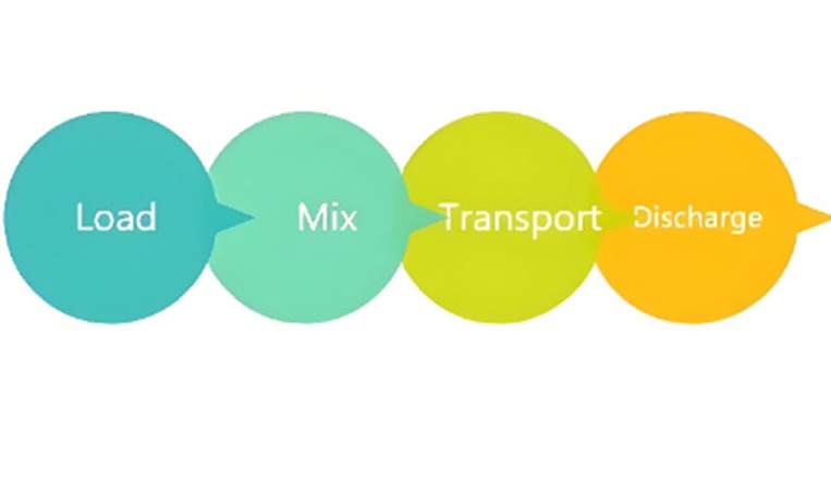 ▶ Transport: Sobald der Beton gemischt ist, transportiert der LKW ihn zur Baustelle. Die Trommel dreht sich während des Transports weiter, um ein Aushärten des Betons zu verhindern.
