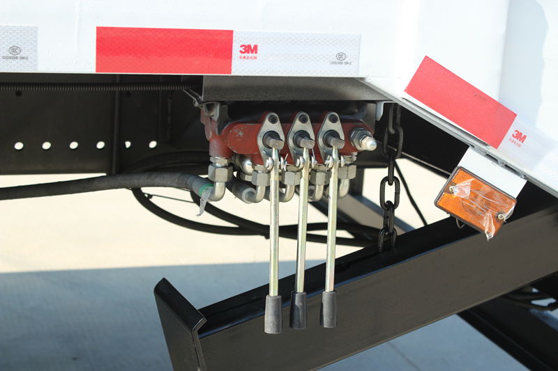 ◇Hydraulische Stützen: Das Fahrzeug ist an der Vorderseite mit zwei hydraulischen Stützen mit hoher Tragfähigkeit ausgestattet. Diese werden während des Be- und Entladens abgesenkt, um dem Fahrzeug vorne Stabilität zu verleihen, ein Kippen der Fahrzeugfront zu verhindern und so einen sicheren und reibungslosen Be- und Entladevorgang zu gewährleisten.