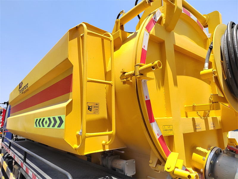 Der obere Aufbau ist als zweiteilige Tankkonstruktion ausgeführt und integriert Abwasserabsaugung und Hochdruckreinigungsfunktionen, um eine „Mehrzwecknutzung in einem Fahrzeug“ zu erreichen: