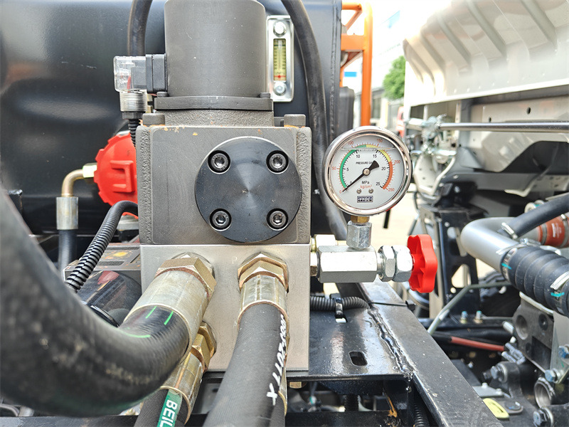 •Düsenanordnung: Ausgestattet mit 28 hochpräzisen, fächerförmigen Düsen am Heck, Sprühbreite 4 Meter, Sprühmenge einstellbar von 0,20-1,5 l/㎡Die Umschaltung zwischen Einzel- und Doppelreihen erfolgt über ein pneumatisches Steuerventil, um sich an unterschiedliche Belagsdicken anzupassen.