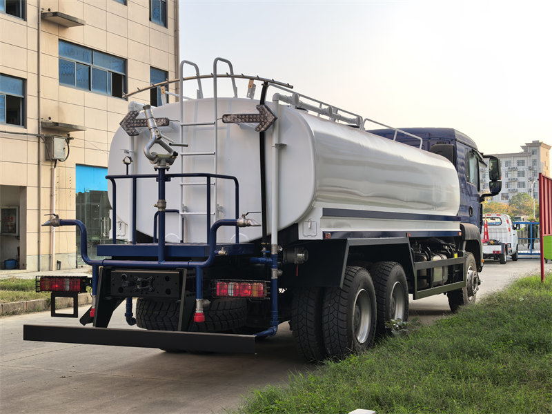 stainless steel tank, 6×6, RHD is optionalDer HOWO TX 18000L Wassersprengwagen ist ein leistungsstarkes, multifunktionales Reinigungsfahrzeug auf Basis des robusten HOWO TX-Fahrgestells mit einem Wassertankvolumen von 18.000 Litern. Angetrieben wird er von einem Weichai-Dieselmotor mit 380 PS und einem 10-Gang-Schaltgetriebe, was ihm robuste Leistung und hohe Tragfähigkeit verleiht. Der Tank besteht aus 5 mm starkem Kohlenstoffstahl und ist mit einer Korrosionsschutzschicht versehen. Seine Innenstruktur umfasst vier Kammern und Anti-Schwingungs-Schwallbleche zur Verbesserung der Fahrstabilität. Das Fahrzeug verfügt über ein Weilong-Kreiselpumpensystem mit selbstansaugender Entleerung und einer Fördermenge von 60 m³/h. Es ist außerdem mit einem Mehrmodus-Sprühsystem ausgestattet, das Frontspülung, Heckberegnung, Seitenberegnung und eine Hochdruckwasserkanone mit 28 Metern Reichweite umfasst. Dadurch eignet es sich für vielfältige Anwendungen wie Stadtbegrünung, Staubbekämpfung, Kühlung und Brandbekämpfung.