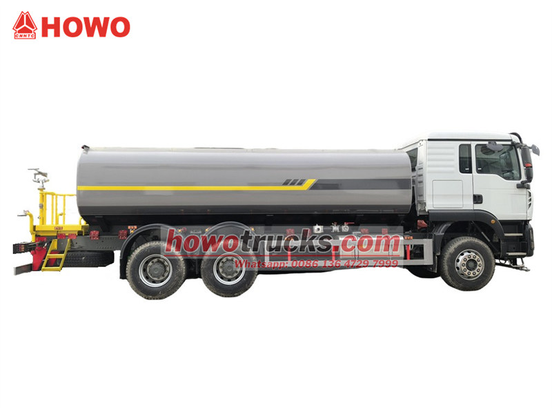 Optional Food grade stainless steel 304-2B and 316 material for potable waterDer neu entwickelte und produzierte HOWO TX 6×4 Wassertankwagen ist ein Schwerlastfahrzeug, das in großem Umfang nach Afrika exportiert wird. Er dient dem Transport, der Besprühung und der Verteilung von sauberem Wasser und ist mit einer Wasserpumpe sowie einem mehrstufigen Rohrleitungssystem für die Besprühung von Front, Mitte und Heck ausgestattet. Zusätzlich verfügt er über eine Heckplattform zur Montage einer Wasserkanone für die Hochdruckreinigung. Hauptsächlich wird er zur Straßenreinigung und Bewässerung eingesetzt. Der HOWO Wassertankwagen ist mit einem WEICHAI WP10.340E22 Dieselmotor ausgestattet, der mit einer effizienten Leistung von 250 kW (340 PS) und einem Hubraum von 9726 cm³ die EURO-2-Norm erfüllt und somit für den afrikanischen Markt geeignet ist. Das manuelle Getriebe HW19710 mit 10 Vorwärts- und 2 Rückwärtsgängen ist optimal auf den WEICHAI Dieselmotor abgestimmt und gewährleistet einen geringen Kraftstoffverbrauch bei gleichzeitig hoher Leistung. Die Achsen stammen von MAN (Deutschland) und bieten eine Tragfähigkeit von 9000 kg vorne und 16000 kg hinten. Die Doppelachsenkonstruktion ermöglicht eine hohe Beladungssicherheit.