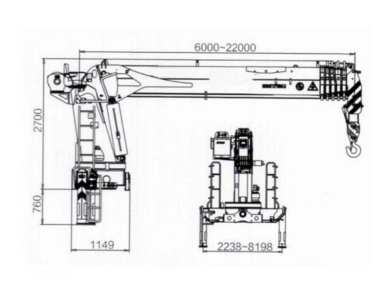 Das Krangewicht beträgt 3570 kg und der Installationsraum beträgt 2350 mm. Das Bedienfeld kann in Englisch oder anderen Sprachen ausgewählt werden, um den unterschiedlichen Bedürfnissen der Nutzer gerecht zu werden. HowoLastwagenmontierter 20-Tonnen-Kran bietet außerdem eine Vielzahl optionaler Konfigurationen, wie z. B. Teleskopkrane, hydraulische Kippmulden, individuell anpassbare Muldenstärke und -höhe sowie optionale Fernbedienungsboxen.
