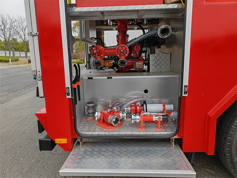Die Feuerlöschpumpe wird über die Zapfwelle angetrieben und hat einen Druckbereich von 1,6–2,5 MPa sowie eine Fördermenge von 80–120 kg/s. Die Feuerlöschkanone hat eine Sprühgeschwindigkeit von 60–100 kg/s und eine Reichweite von 40–60 Metern und kann effektiv auf verschiedene Brandsituationen reagieren.Howo Feuerwehrwagen ist außerdem mit einer kompletten Standardausrüstung für die Feuerwehr ausgestattet, wie Schaufeln, Brecheisen, Äxte und Schneidgeräte; Leitern und Flutlichtstrahler sind optional erhältlich.
