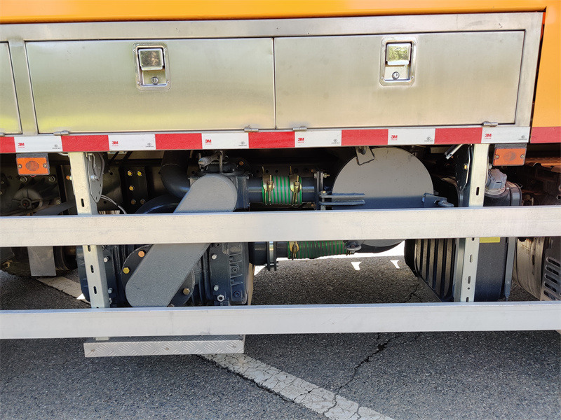 2. Hochdruckreinigungssystem: Im Betrieb treibt der Nebenabtrieb des Fahrgestells eine 3N2-SZ Hochdruckreinigungspumpe an, die sauberes Wasser aus dem Frischwassertank unter Druck setzt und es durch die Düsentrommel ausstößt, um die Innenwände des Rohrs zu spülen. Der hohe Wasserdurchfluss erzeugt eine starke Aufprallkraft und entfernt so hartnäckige Verschmutzungen.