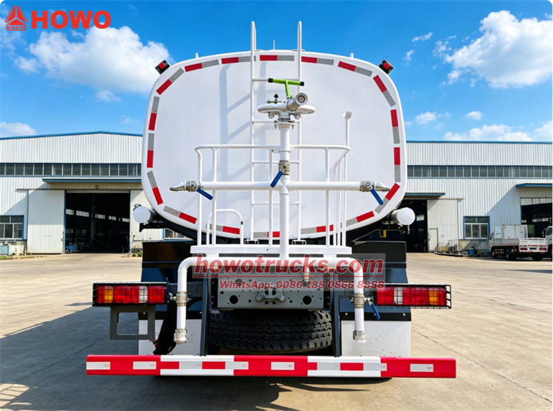 It is equipped with a WD615.47 dedicated engine, matched with an HW19710 transmission, and features a large-capacity 20000L oval tank. It also integrates a complete set of operating devices, including front spray nozzles, a rear working platform, a water cannon, and rear spray nozzles, enabling multi-scenario, all-around watering, dust suppression, and washing operations, perfectly adapting to various sanitation work conditions.