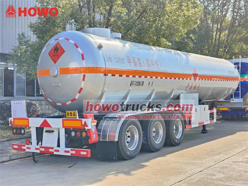 Der Chemikalientankauflieger CS9402GYQA ist ein dreiachsiger Tankwagen mit einem Fassungsvermögen von 40 Kubikmetern, der speziell für den Transport von Methylchlorid entwickelt wurde. Der Tankkörper besteht aus hochfestem Q420R-Stahl und ist für einen Betriebsdruck von bis zu 1,2 MPa ausgelegt. Er ist mit einem Notabsperrventil, einem EBS-System, einer Luftfederung und Scheibenbremsen ausgestattet und gewährleistet so den sicheren Transport von hochriskanten Chemikalien. Das Fahrzeug zeichnet sich durch seine robuste Konstruktion aus, erfüllt hohe Standards hinsichtlich Korrosionsbeständigkeit und Betriebsspezifikationen und eignet sich für anspruchsvolle Chemikalientransporte.