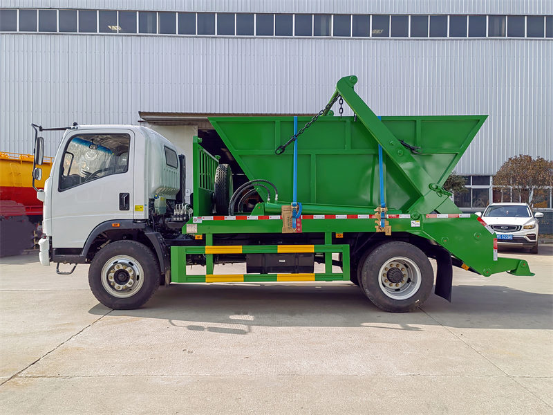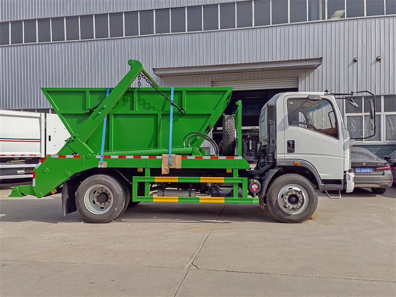 Die Howo-Müllwagenlösung mit Kipplader vereint innovative Lösungen mit modernem Design. Sie ist für den täglichen Einsatz und hohe Langlebigkeit konzipiert. Dank des geringen Gewichts des Kippladers lassen sich hohe Nutzlasten schnell und sicher transportieren. Das Be- und Entladen der Müllcontainer ist benutzerfreundlich und praktisch. Der Howo-Müllwagen mit Schwenkarm zeichnet sich durch innovative Effizienz und Liebe zum Detail aus und erreicht höchste Qualität durch intelligente und durchdachte Lösungen. Diese Qualität basiert auf modernsten Fertigungsmethoden und profitiert von der Verwendung hochfester Materialien. Dadurch ist der Kipplader extrem robust und bietet einen hervorragenden Korrosionsschutz. Das hochwertige Hydrauliksystem der CS-Trucks gewährleistet eine präzise Teleskoparmbewegung und sorgt so für einen stabilen Betrieb.